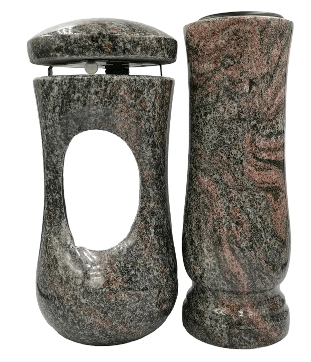 Grabvase und Laterne aus paradiso granit